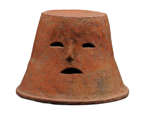 不同于陶俑直接而外放的笑容,镂空人面覆盆形器的笑意是从它的眼睛萌出的。这个陶盆五官虽是中空状,但弯弯的月牙眼像是会说话般,与微张的口形成呼应,显得含蓄又可爱。